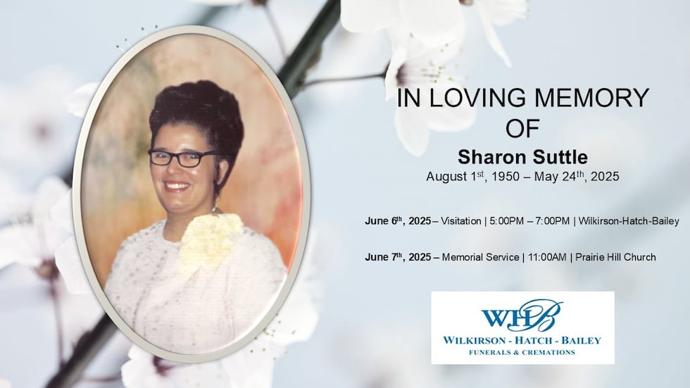 Sharon McGee Suttle went to be with the Lord Saturday, May 24th, 2025.